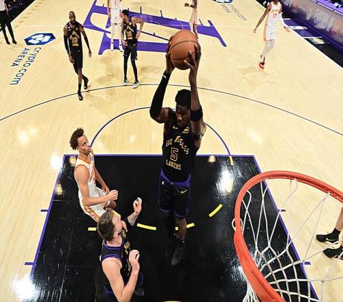 本场比赛中,湖人的先发中锋德安德烈-艾顿(DeAndre Ayton)的表现还是相当不错的。艾顿全场出场30分51秒,投篮9中7,罚球3中3,得到了17分18篮板1助攻的两双数据,其中还包括了3个前场篮板,还有3次犯规,正负值也是达到了全场次高的+31。艾顿在进攻端有着相当不错的篮下得分能力和终结能力,他的出手次数其实并不多,但他还是展现出了自己的水准并且拿到了不少分数,在进攻端发挥出了自己的价值。不仅如此,艾顿在防守端也是足够强硬的,他在后场篮板争抢方面的表现非常积极,他在内线防守方面的态度也是值得肯定的。至少在本场比赛中,艾顿打出了攻守兼备的表现,这也是球队能够取得这样一场大胜的关键因素。