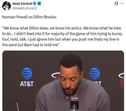 赛后鲍威尔谈及与狄龙的冲突时说道:“我们都知道狄龙的所作所为,也十分了解他的伎俩,更清楚他想要干什么,大多数情况下我都会无视他的推搡、犯规、拉扯和言语挑衅,但今晚他触碰了我的底线,幸好阿德巴约及时拉住了我。”