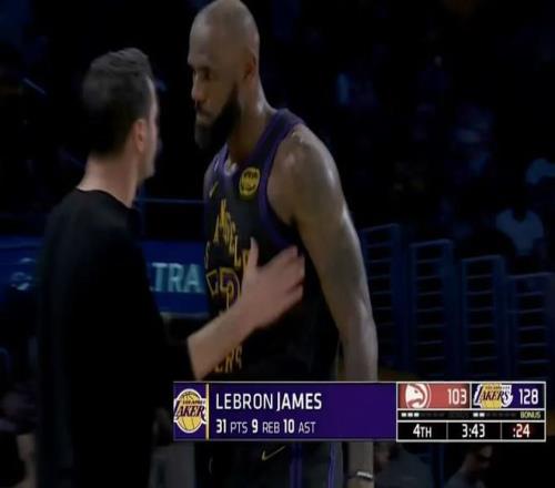 差一个篮板就锁定三双的老詹被替换下场