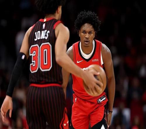 本场比赛中,火箭的先发控卫阿门-汤普森(Amen Thompson)的表现依然是令人喜忧参半。阿门全场出场42分26秒,投篮10中6,三分线外2中1,罚球10中10,得到了23分5篮板2助攻2抢断的数据,还有3次失误和3次犯规,正负值为-2。阿门在进攻端依然是展现出了出色的冲击力和爆发力并且对对手的内线制造了巨大的威胁。不仅如此,他还命中了一记三分,而且他在罚球线上的表现也是相当稳定的。除此之外,阿门也展现出了不俗的防守能力,在防守端起到了一定的作用。只是问题就在于,阿门在传球和组织方面的表现依然很不理想,他也是球队先发阵容中唯一一个正负值为负数的球员,这也能够说明他在场上时球队的局面很不理想,而在他没有出场的5分多钟时间内,火箭却反而赢了公牛8分,阿门不在时火箭的进攻反而变得更加流畅了。