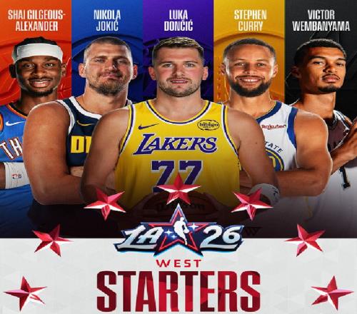 体育播报1月20日宣 2026年NBA全明星首发出炉.西部:东契奇(26岁326天)、约基奇(30岁335天)、亚历山大(27岁192天)、...