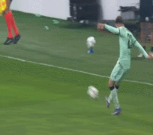 第43分钟,右路任意球开到禁区,德凯特拉雷头球攻门击中立柱